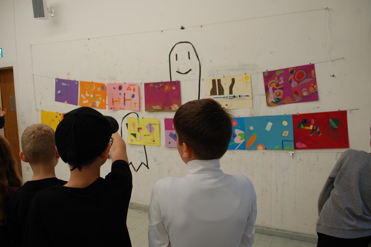 Nach der Mittagspause folgte der Höhepunkt des Tages im Kunstmuseum: eine Führung durch die Ausstellung und ein kreativer zweisprachiger Workshop. Zuerst wurden die Ausstellung besucht und Farben, Formen und Emotionen von einigen Bildern diskutiert. Die Kinder betrachteten im Workshop und im Gespräch das Verhältnis von Emotionen und Farben - manchmal auf Deutsch, manchmal auf Französisch, oft in einem munteren Mischmasch. Danach konnten sie selbst aktiv werden und gestalteten eigene Kunstwerke, die am Ende wie eine farbenfrohe Mini-Ausstellung wirkten.