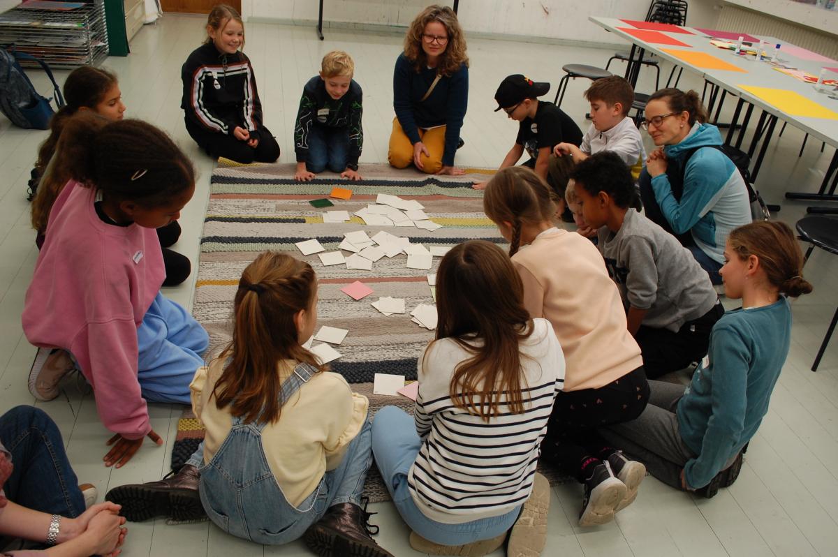 Nach der Mittagspause folgte der Höhepunkt des Tages im Kunstmuseum: eine Führung durch die Ausstellung und ein kreativer zweisprachiger Workshop. Zuerst wurden die Ausstellung besucht und Farben, Formen und Emotionen von einigen Bildern diskutiert. Die Kinder betrachteten im Workshop und im Gespräch das Verhältnis von Emotionen und Farben - manchmal auf Deutsch, manchmal auf Französisch, oft in einem munteren Mischmasch. Danach konnten sie selbst aktiv werden und gestalteten eigene Kunstwerke, die am Ende wie eine farbenfrohe Mini-Ausstellung wirkten.